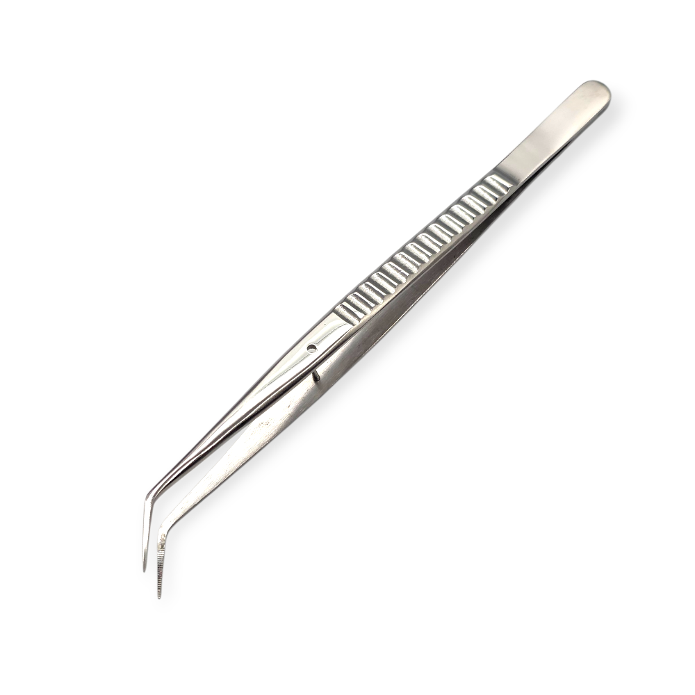 Пинцет зубной изогнутый по Flagg 16 см, р/ч 15х0,5 мм.