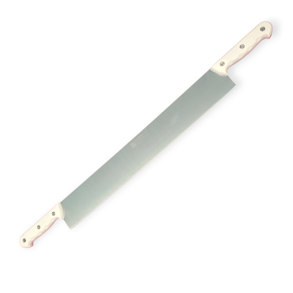 Лезо - це нержавіюча сталь, легована високовуглецева сталь. Довжина - 500 мм. З боків ріжучої кромки розташовуються ручки, тобто ніж дворукий. Ручка виготовлена із спеціально розробленого для ножів сополімерного поліацетату. Ніж може піддаватися стерилізації в спеціальних шафах, а також митися в посудомийній машині.